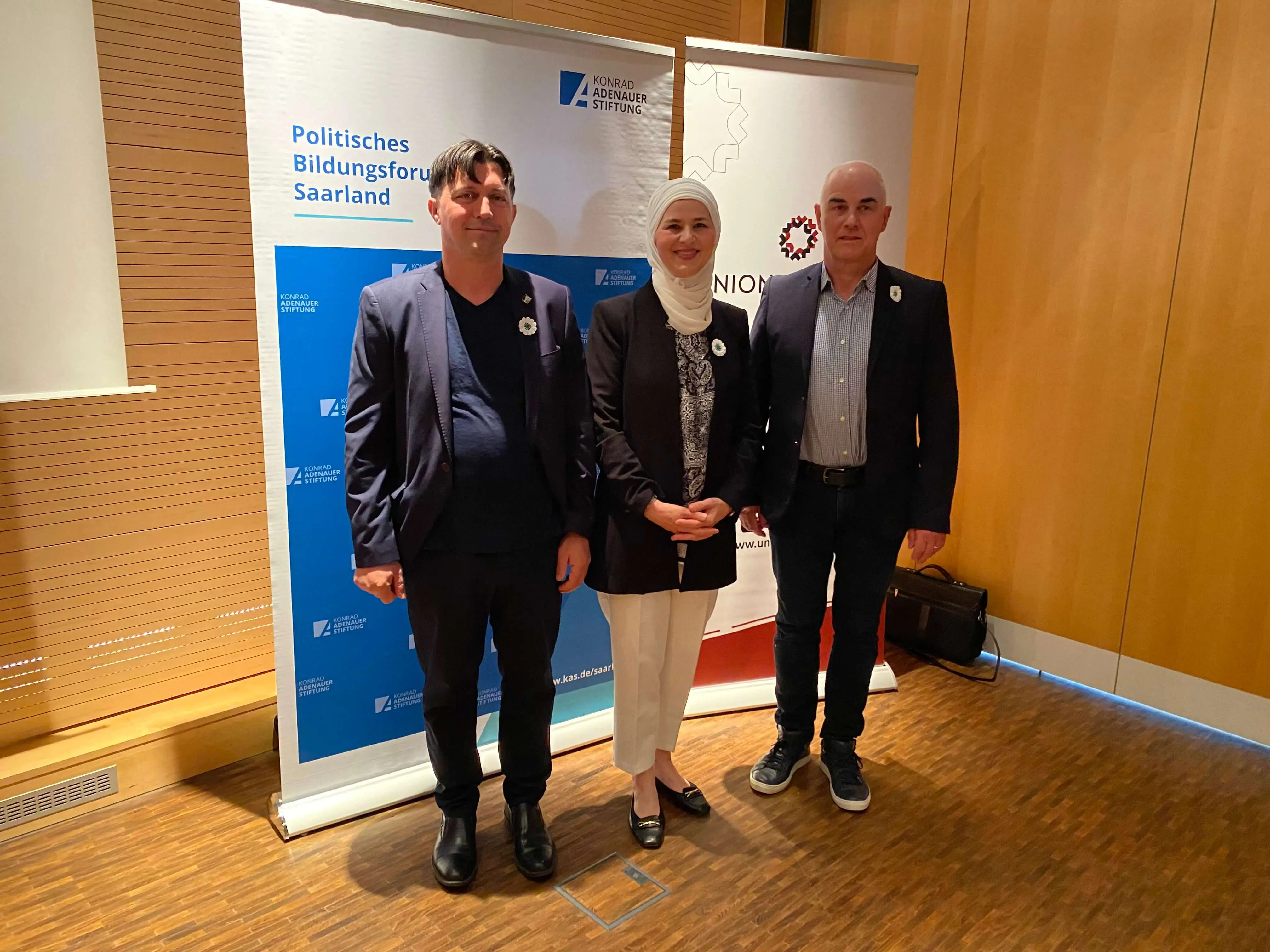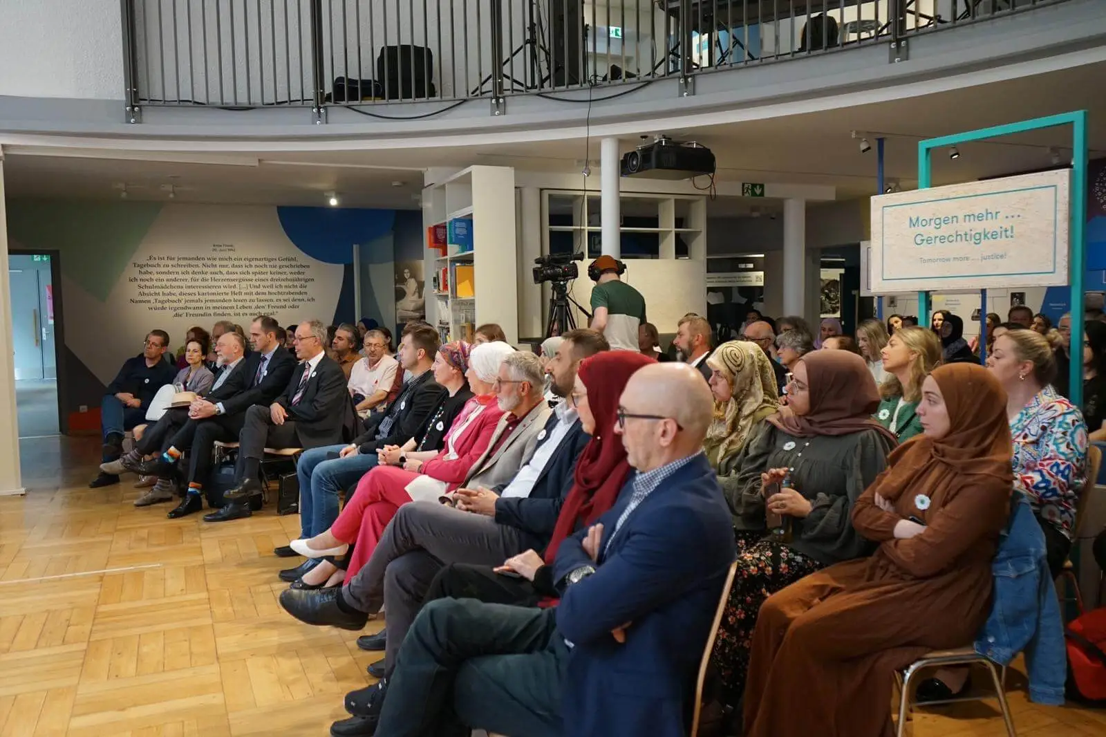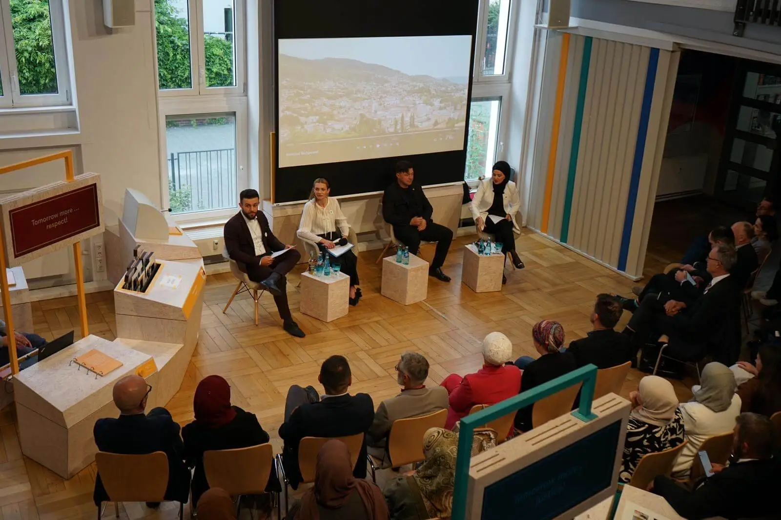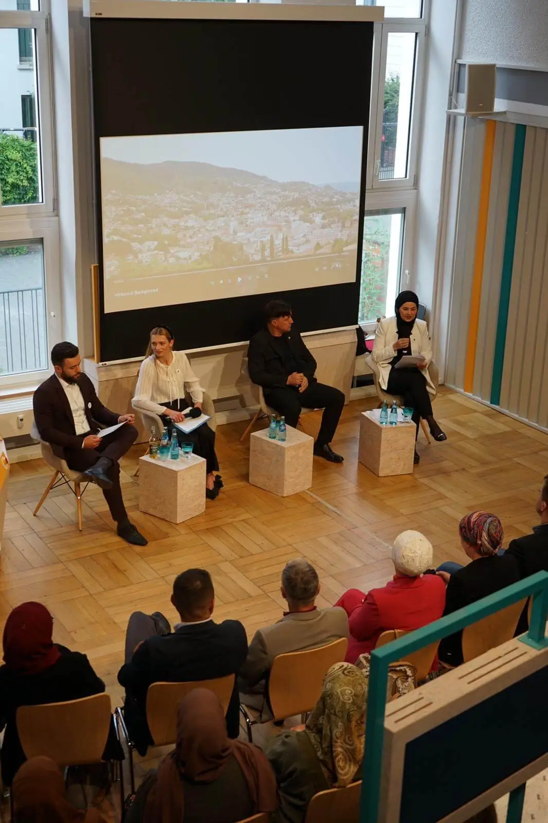 All these events were organized in collaboration with significant German institutions. In Berlin, the host was the German Academy on Islam (Deutsche Islam Akademie); in Frankfurt, the Anne Frank Encounter Center (Begegnungsstätte Anne Frank); and in Saarbrücken, the Konrad Adenauer Foundation and the CDU Foundation (Union Stiftung). The organization and moderation of all three panels and the exhibitions were led by Dr. Dževada Šuško, head of the Section for International Cooperation at the Directorate for Foreign Affairs and Diaspora of the Riyasat of the Islamic Community in Bosnia and Herzegovina, with the support of the Islamic Community of Bosniaks in Germany (IGBD).